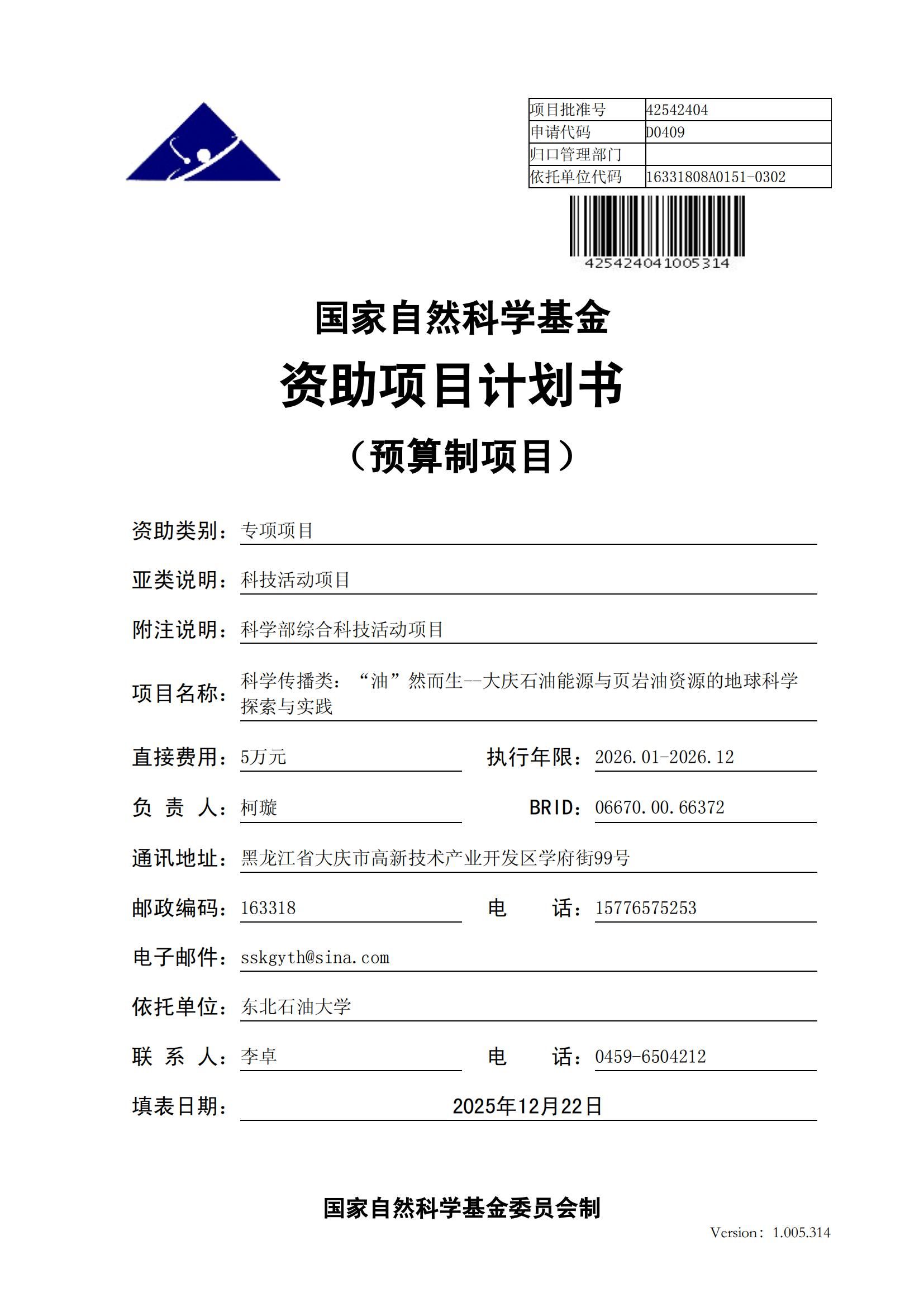 近日,国家自然科学基金委员会公布地球科学部科技活动项目立项结果。我院柯璇副教授牵头申报的科学传播类项目《“油”然而生 —— 大庆石油能源与页岩油资源的地球科学探索与实践》成功获批。这不仅是我院,更是学校首次获得国家自然科学基金科技活动项目资助。
