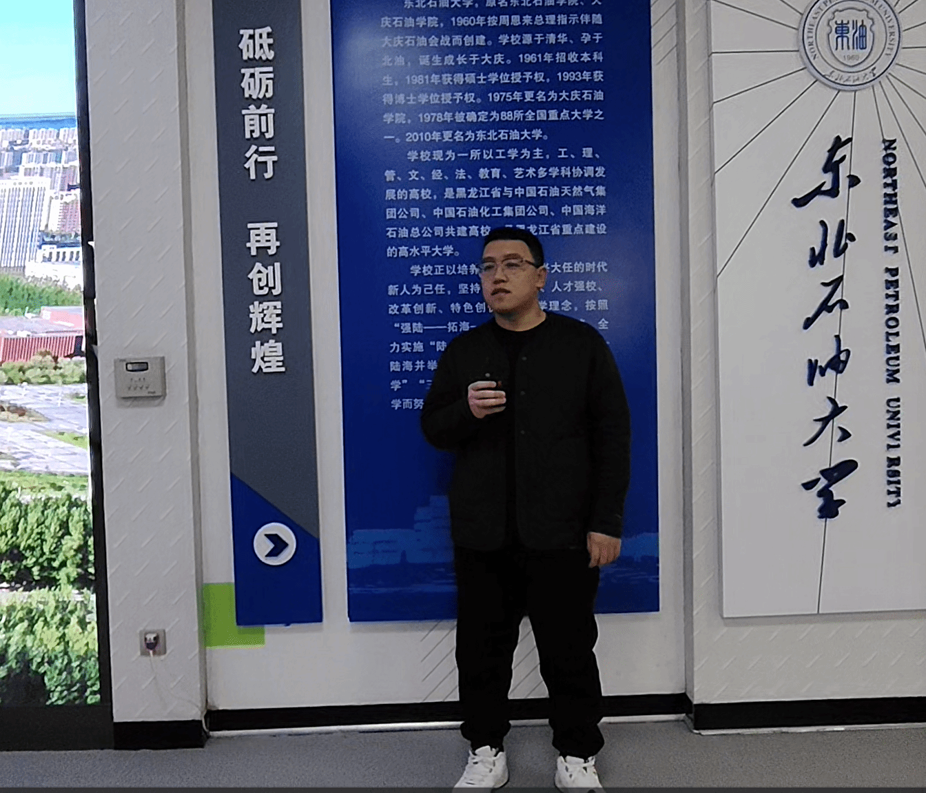 在大庆油田勘探开发研究院,师生们通过展区讲解、实物观摩与自由参观,系统学习了大庆油田从开发建设到持续发展的辉煌历程,深刻感悟了一代代石油人艰苦奋斗、攻坚克难的科学家精神。在交流分享环节,我院学生代表代金库结合研学经历分享感悟,进一步坚定了全体学生“把论文写在祖国大地上”的理想信念,激发了投身能源强国建设的内生动力。