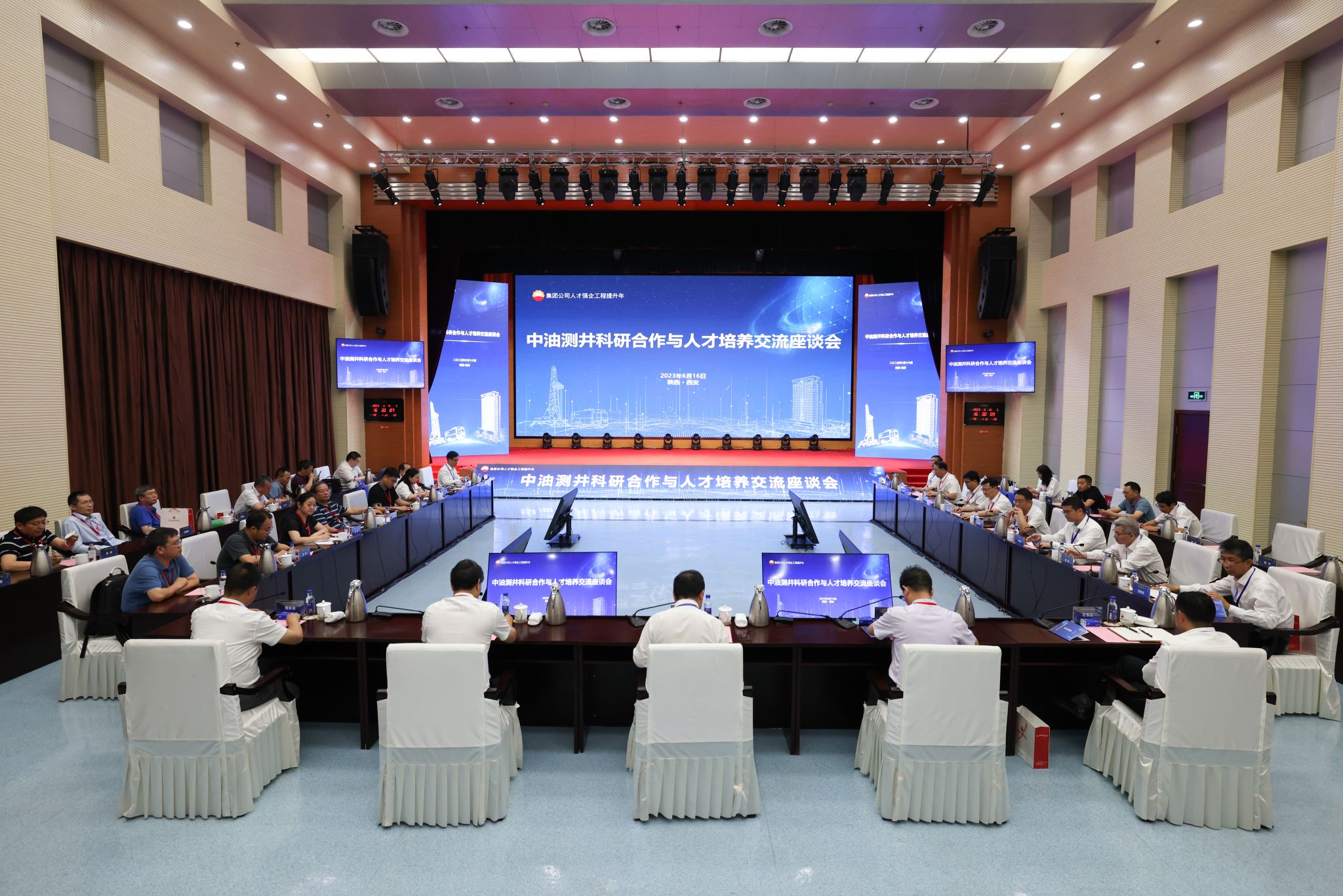 揭牌仪式后,中油测井公司与中国石油大学(北京)、中国石油大学(华东)、西安邮电大学、永乐高、长江大学等十几所高校举行中油测井科研合作与人才培养交流座谈会,就博士后工作站的建设、运行、科研创新和人才培养等作交流探讨。