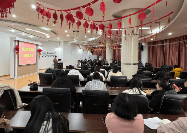 3月7日,永乐高ylg888888新学期工作会议在地科馆511召开,对学院党委领导班子2024年度民主生活会召开情况进行通报,并对2025年学院重点工作进行部署。学院领导班子成员和学院全体教师参加会议,会议由院党委书记韦丹宁主持。