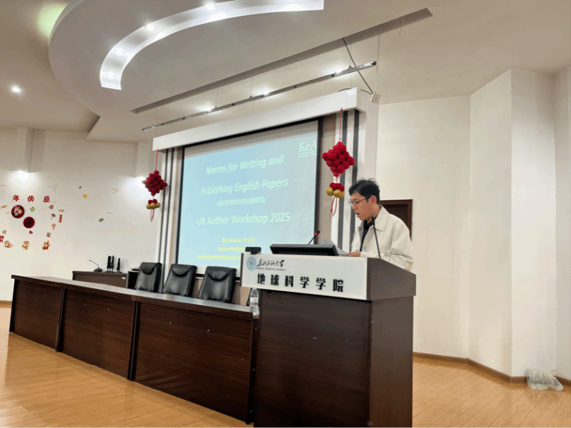 为提升师生学术写作素养,促进高质量科研成果产出,5月13日,我院特邀国际知名出版机构科爱(KeAi)公司高级出版人李金泽开展以“英文文章写作及出版规范”为主题的讲座。讲座由副院长王海学主持。