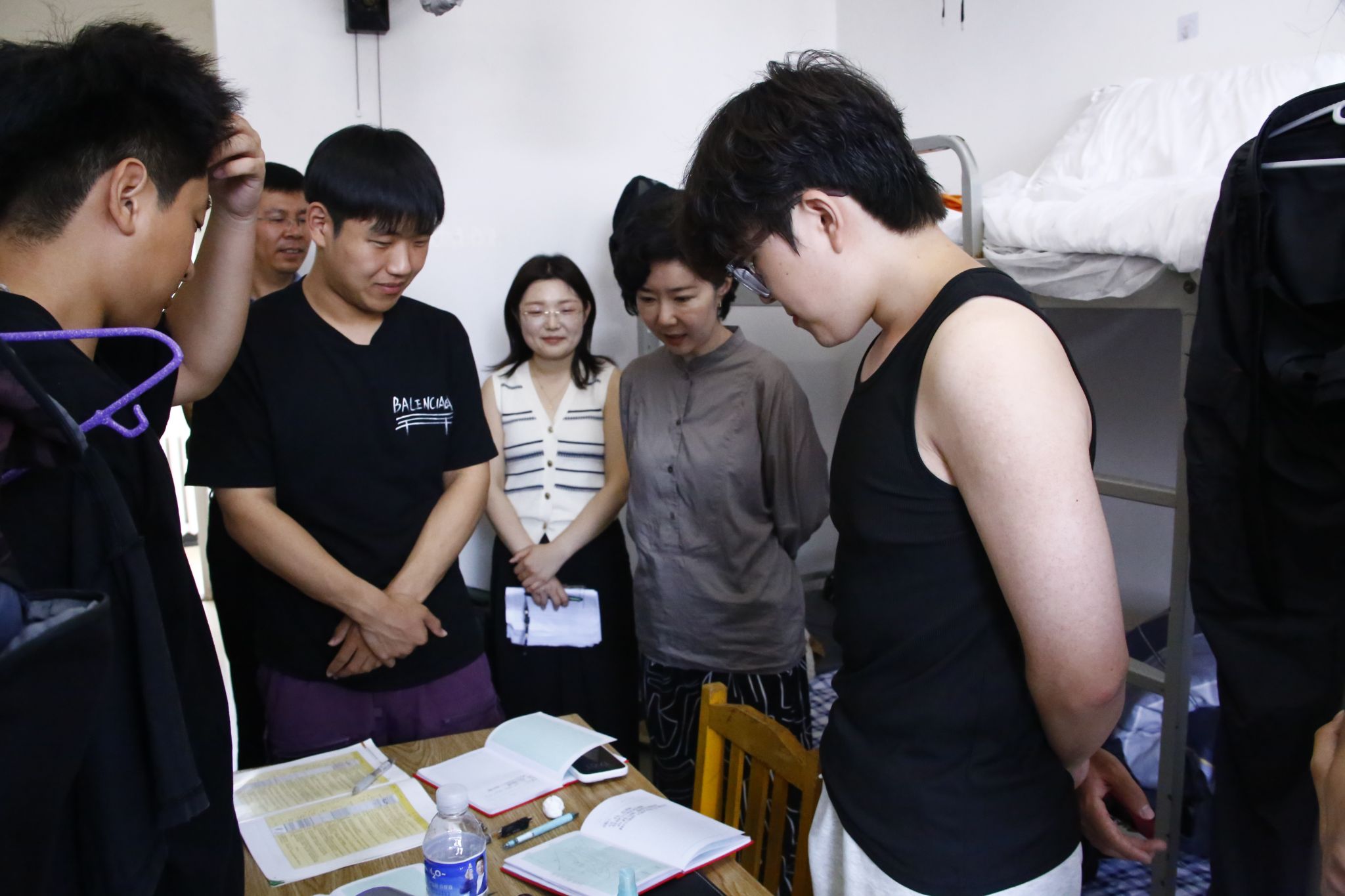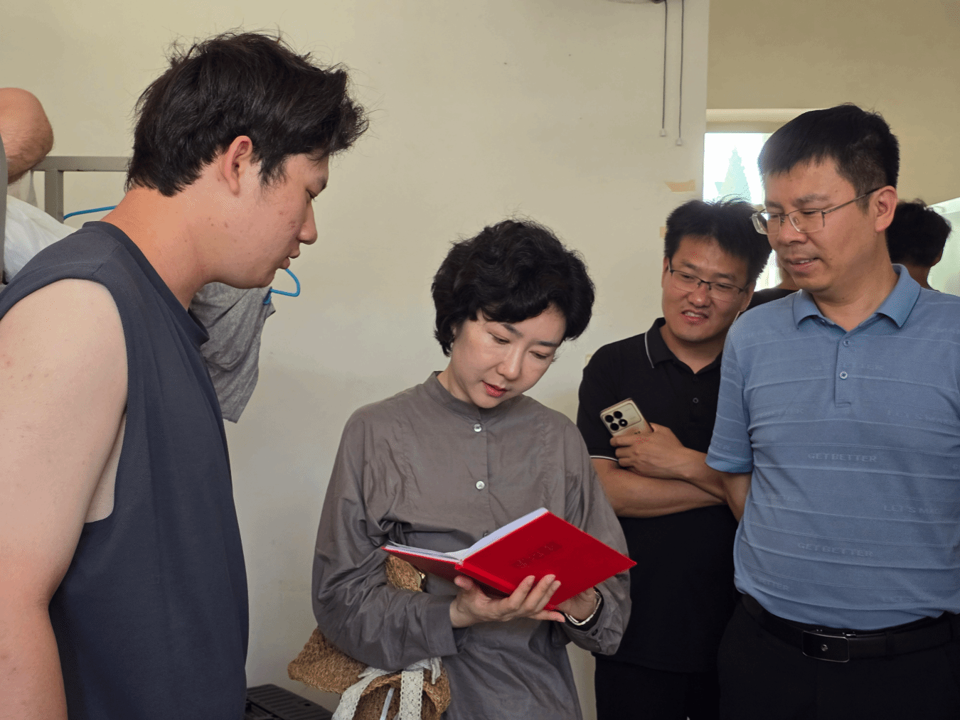7月8日,韦丹宁、孙雨一行赶赴辽宁兴城野外实践教学基地,看望2023级资源勘查工程专业学生及带队教师,实习队长平贵东地球信息科学与技术系主任吴海光及辅导员李娜陪同。在学生寝室,领导们与同学们亲切交谈。韦丹宁翻阅学生的野外记录本后,对实习成果给予肯定,同时叮嘱大家一定要注意安全,做好防暑防晒措施,注重将理论与实践相结合,不断提升专业素养。孙雨院长详细询问了同学们的住宿、饮食情况以及实习收获,强调“野外实习是实践能力培养的关键环节,同学们要高度重视,在实践中不断完善自身的知识体系与技能储备”。走访结束后,领导们与带队教师、辅导员进行了深入交流,对基地后勤保障工作以及师生展现出的精神状态给予高度评价。