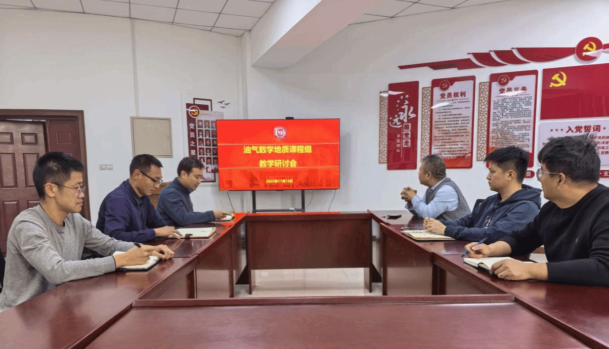 2025年11月14日,“油气数学地质课程组”教学团队在地科馆610召开教学研讨会。会议由史集建老师主持,课程组全体成员朱焕来、杜先利、刘晓文、余博文、李磊等老师参会。