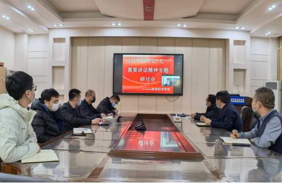 党委副书记、院长张云峰在会上作主题发言。张云峰指出,院系党员干部要常态化学习领会总书记重要讲话精神,把学习党史作为一门必修课程,必须掌握精髓,学通用好,切实从中感受信仰之力、理想之光和奋斗之艰,始终保持理论上的清醒和政治上的坚定。要学会在学习中汲取思想、智慧和精神的力量,为深入落实学校党代会提出的目标任务、推进地科院各项工作而努力奋斗。