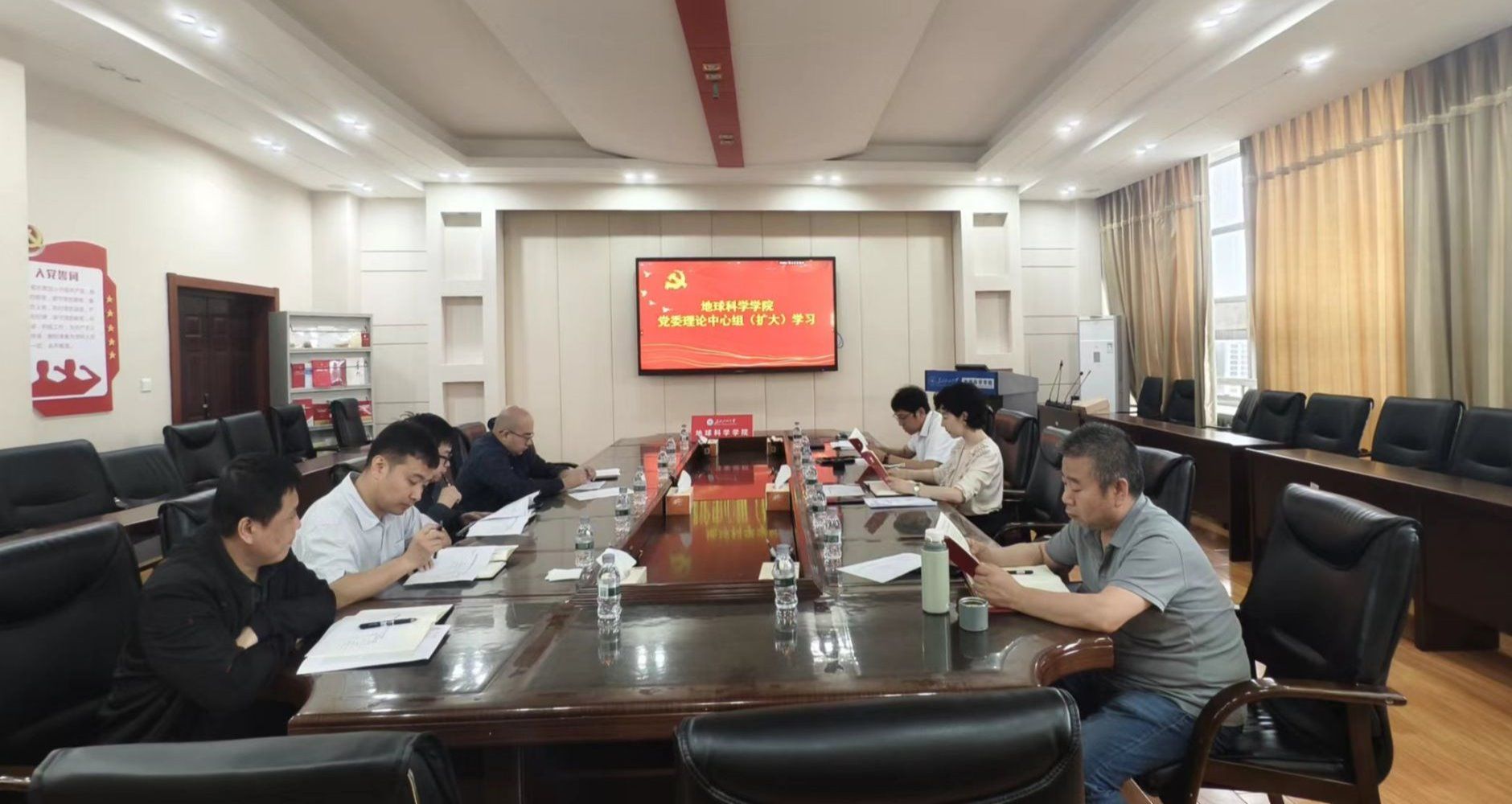 625午,学院党委理论学习中心组召开(扩大)会议,学院领导、党委委员、纪委委员、系(所、中心)主任和党支部书记参加学习会。学院党委书记韦丹宁主持会议。