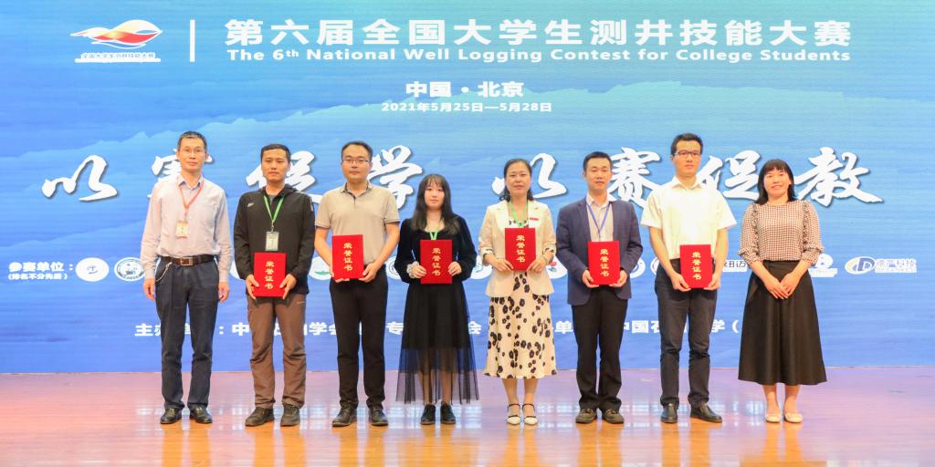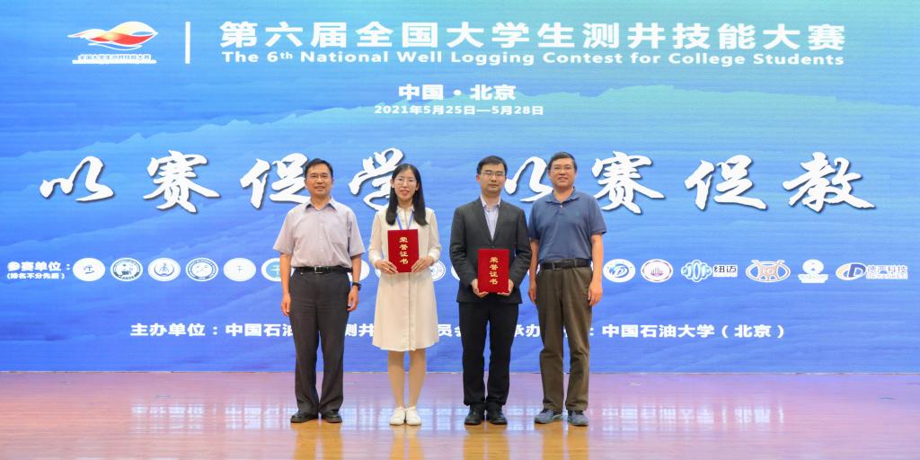 5月26日-28日,第六届全国大学生测井技能大赛暨首届全国测井青年教师教学大赛在中国石油大学(北京)昌平校区举行。我校永乐高ylg888888派出1支研究生代表队和2支本科生代表队参加决赛,经过三天激烈角逐,研究生队获大赛一等奖,本科生队分获二等奖和三等奖;研究生李卓、张钰威、修欧阳分别获得最佳专业知识奖、最佳知识竞赛奖、最佳解释报告奖,姜艳娇获得指导教师奖。在首届全国测井青年教师教学基本功大赛(测青赛)中,我校姜艳娇和唐晓敏老师分别获得大赛特等奖和一等奖。
