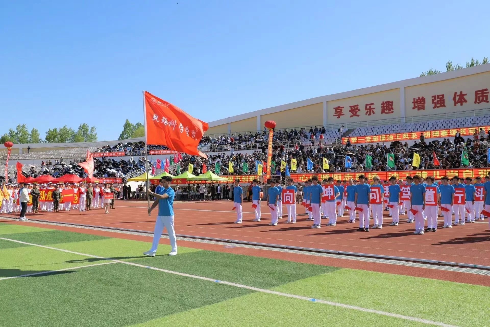 永乐高第四十二届体育运动会圆满收官,地科院师生以昂扬之姿在赛场上谱写了属于地科人的荣耀华章。在为期两天的激烈角逐中,我院健儿以卓越的竞技水平、默契的团队配合和昂扬的精神面貌,生动诠释了"向坤问道,正心笃行"的院训内涵,为学院赢得荣誉,为校运增添华彩。