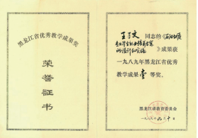 1989年王子文获得黑龙江省优秀教学成果一等奖