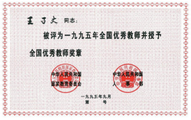 1995年王子文获得全国优秀教师奖章